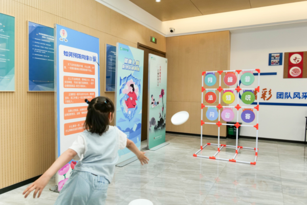 活動現(xiàn)場,家長和孩子在手抄報上畫下對網絡安全和文明上網的理解與期盼。而現(xiàn)場設置的網絡普法問答“飛盤九宮格”、防沉迷時間管理器制作等互動游戲形式,更是引起眾多小朋友的興趣和熱情,每個游戲區(qū)前都排起了長隊,在歡聲笑語中,針對未成年人的網絡保護知識也在孩子們心中扎根發(fā)芽。