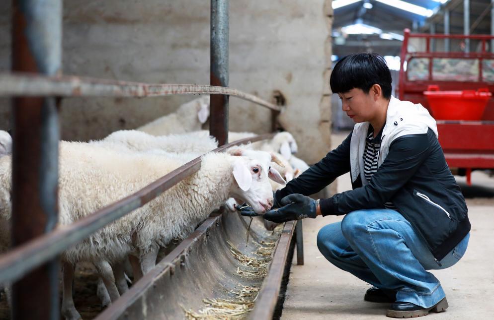 在富民新村養(yǎng)殖區(qū)的養(yǎng)殖暖棚內(nèi),養(yǎng)殖戶(hù)蒲萬(wàn)林在查看肉羊長(zhǎng)勢(shì)。新華社記者 郭剛 攝