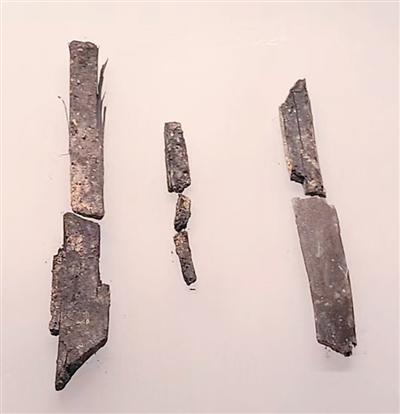 寶墩古城建筑基址出土的碳化竹片。 劉裕國攝