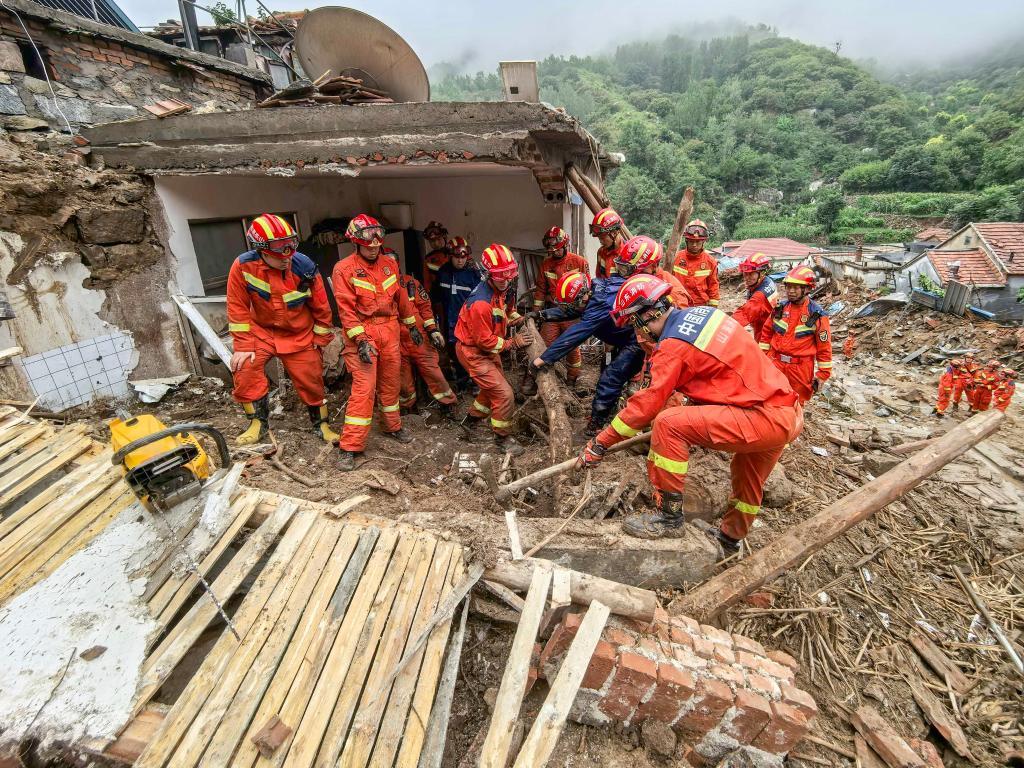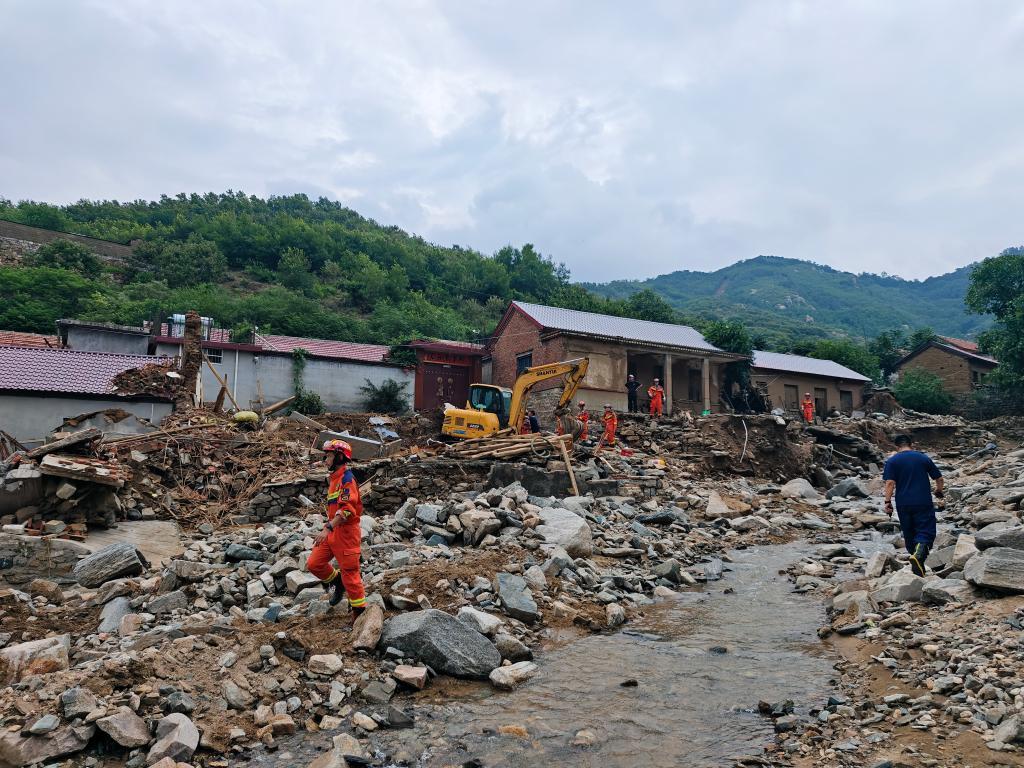 在朱家峪村開(kāi)展救援的消防隊(duì)員。新華社記者 邵魯文 攝