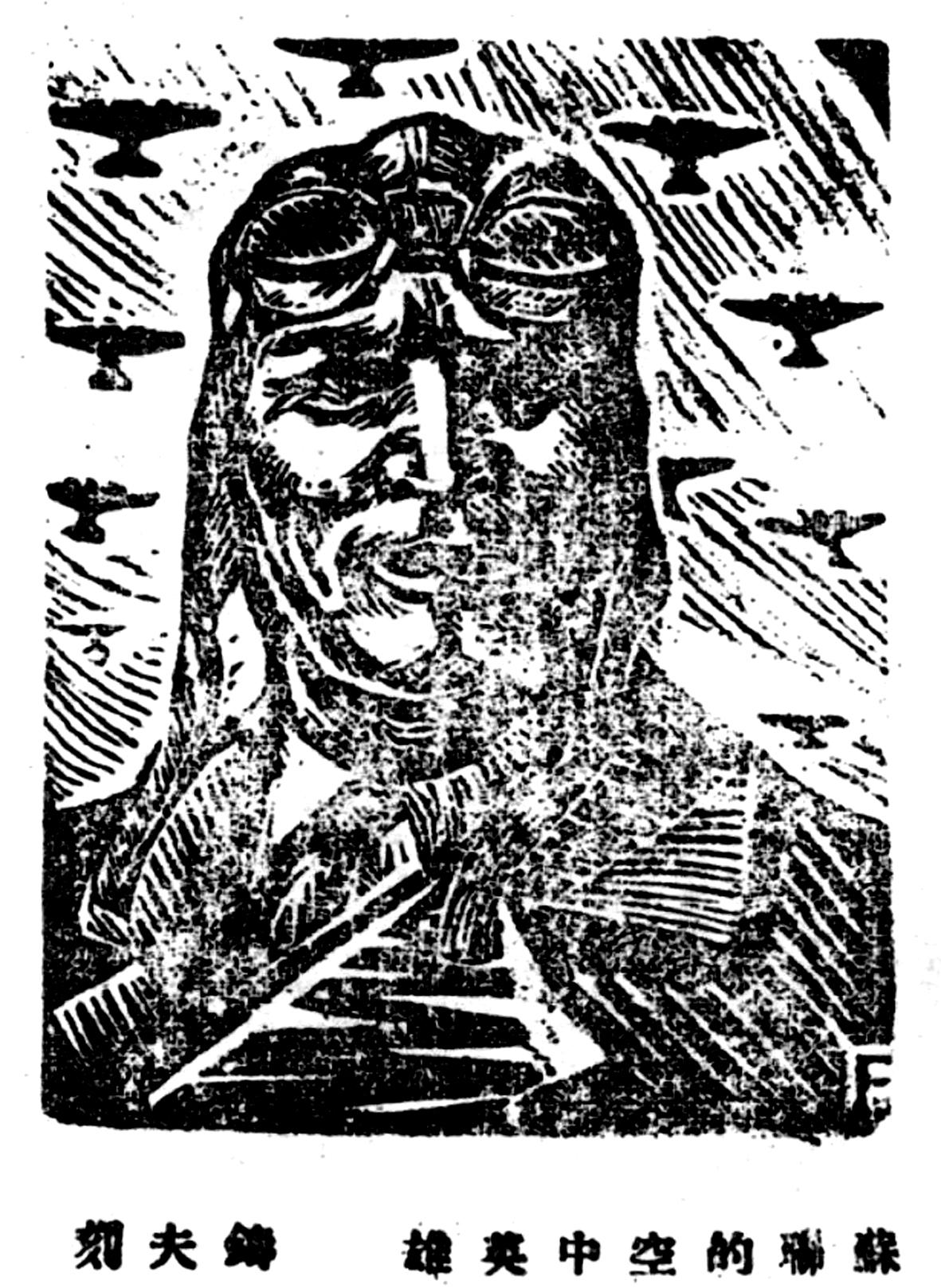 圖為1939年8月18日,《新華日報》刊登鑄夫創(chuàng)作的《蘇聯(lián)的空中英雄》。