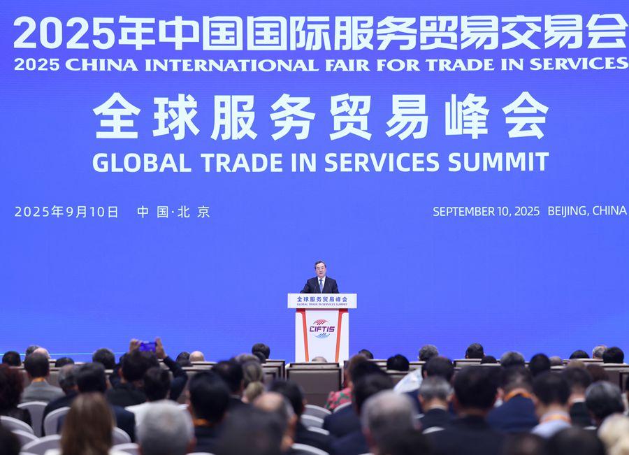9月10日,2025年全球服務(wù)貿(mào)易峰會在北京舉行。中共中央政治局常委、國務(wù)院副總理丁薛祥出席峰會并發(fā)表主旨講話。新華社記者 丁林 攝