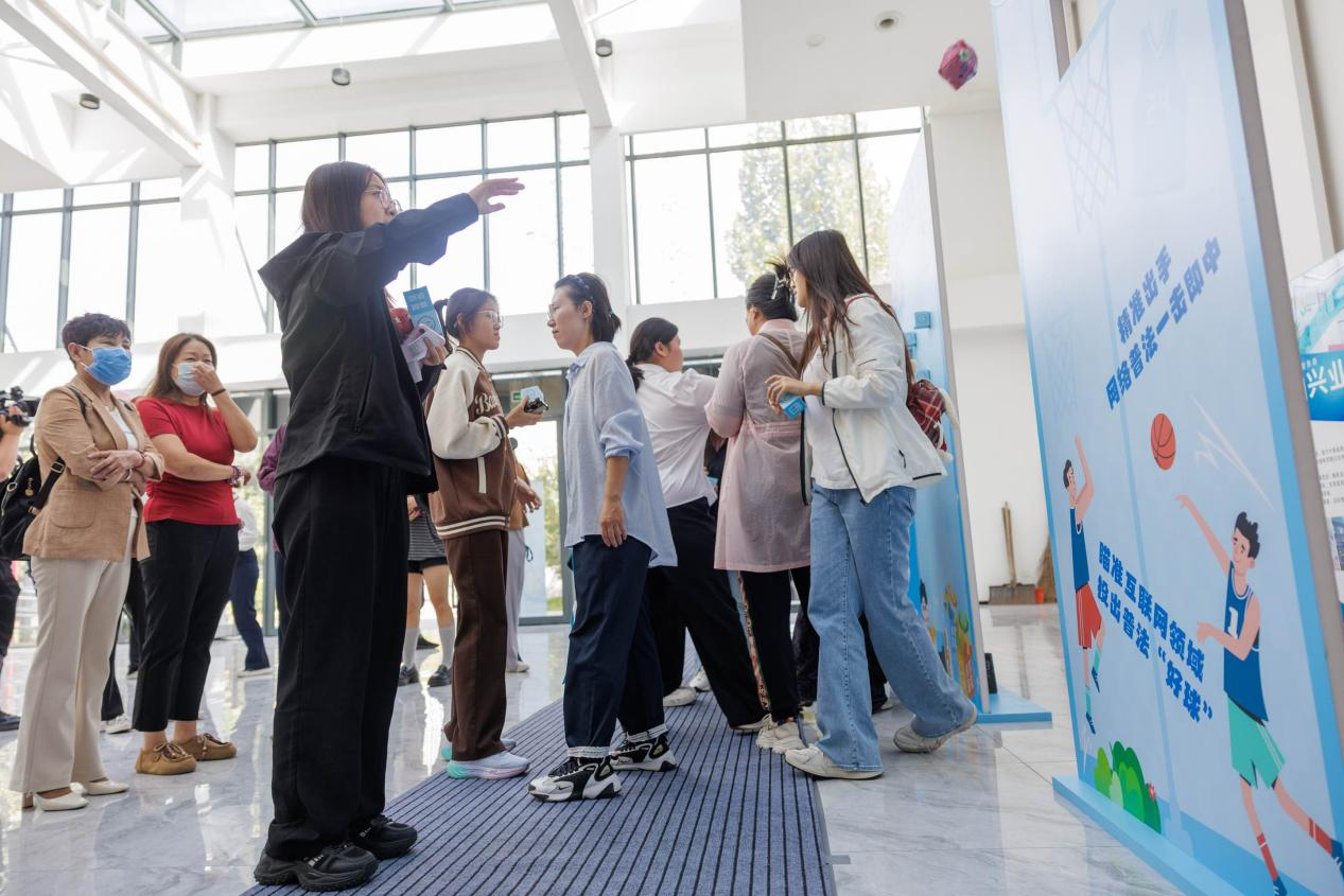 在互動區(qū)域,“法治盲盒抽簽”“法治投籃”等游戲吸引眾多企業(yè)職工參與,于玩樂中學(xué)習(xí)了《中華人民共和國網(wǎng)絡(luò)安全法》《中華人民共和國個人信息保護(hù)法》等法律法規(guī)知識,增強了識別網(wǎng)絡(luò)謠言和防范網(wǎng)絡(luò)詐騙的意識與能力。