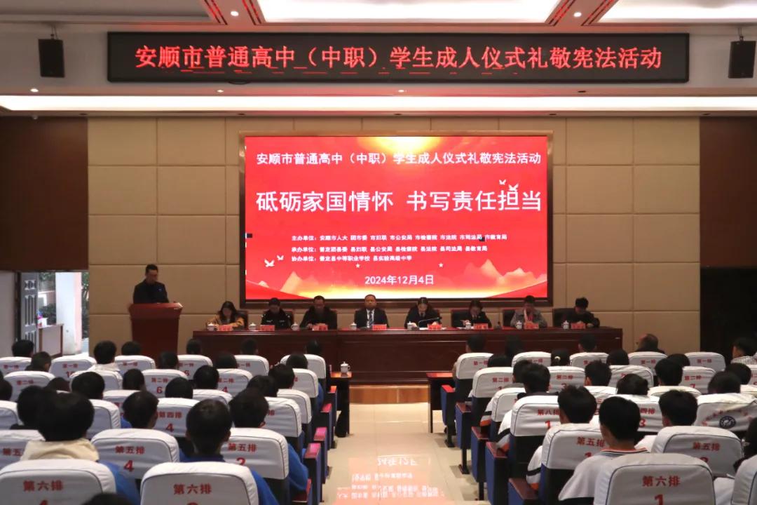 圖為安順市普通高中(中職)學(xué)生成人儀式禮敬憲法活動(dòng)。