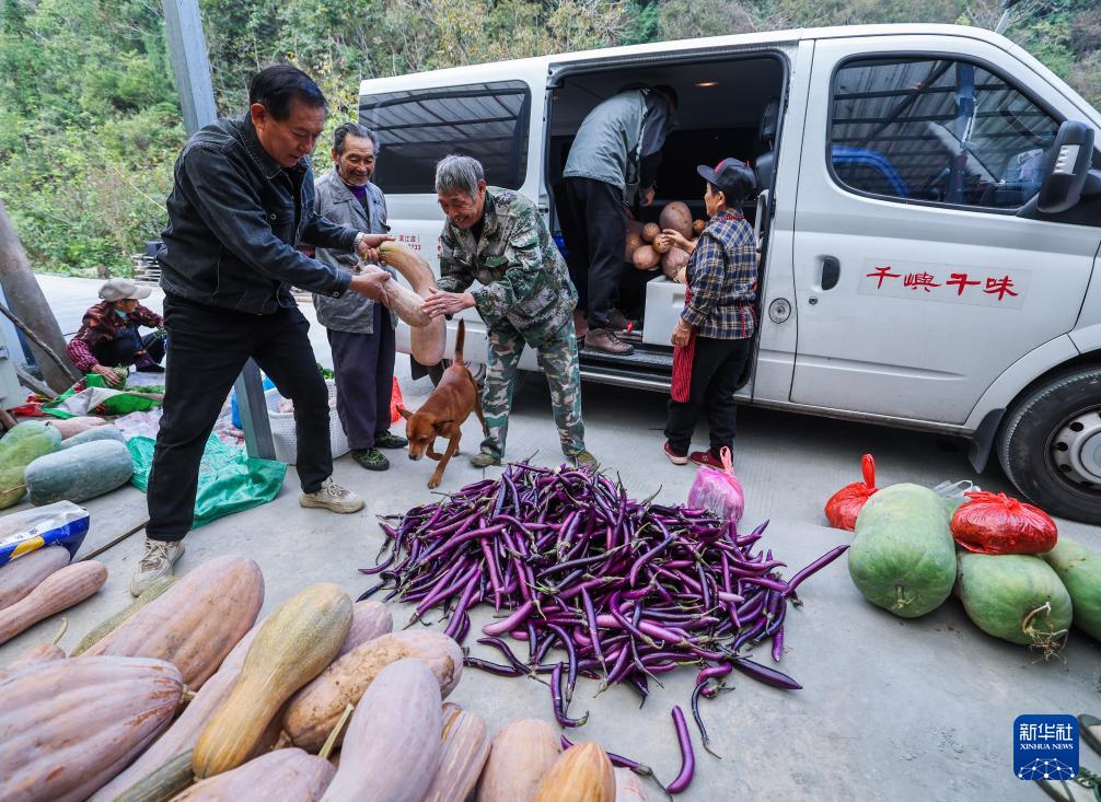 10月27日,愛(ài)心餐飲企業(yè)的工作人員把收購(gòu)的各類(lèi)農(nóng)特產(chǎn)品裝車(chē)準(zhǔn)備運(yùn)往杭州。