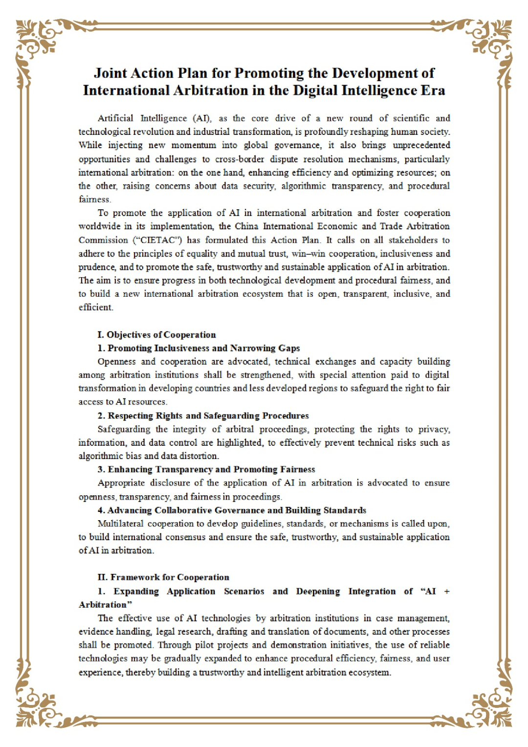 附:《攜手促進(jìn)數(shù)智時(shí)代國(guó)際仲裁發(fā)展的共同行動(dòng)計(jì)劃》中英文文本