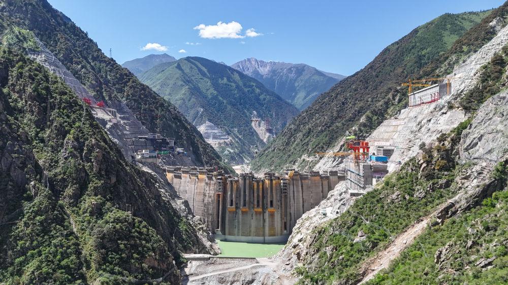 建設(shè)中的葉巴灘水電站(2025年6月30日攝,無人機照片)。該水電站地處四川甘孜州白玉縣與西藏昌都市貢覺縣交界處的金沙江上游。新華社發(fā)(陳浩 攝)