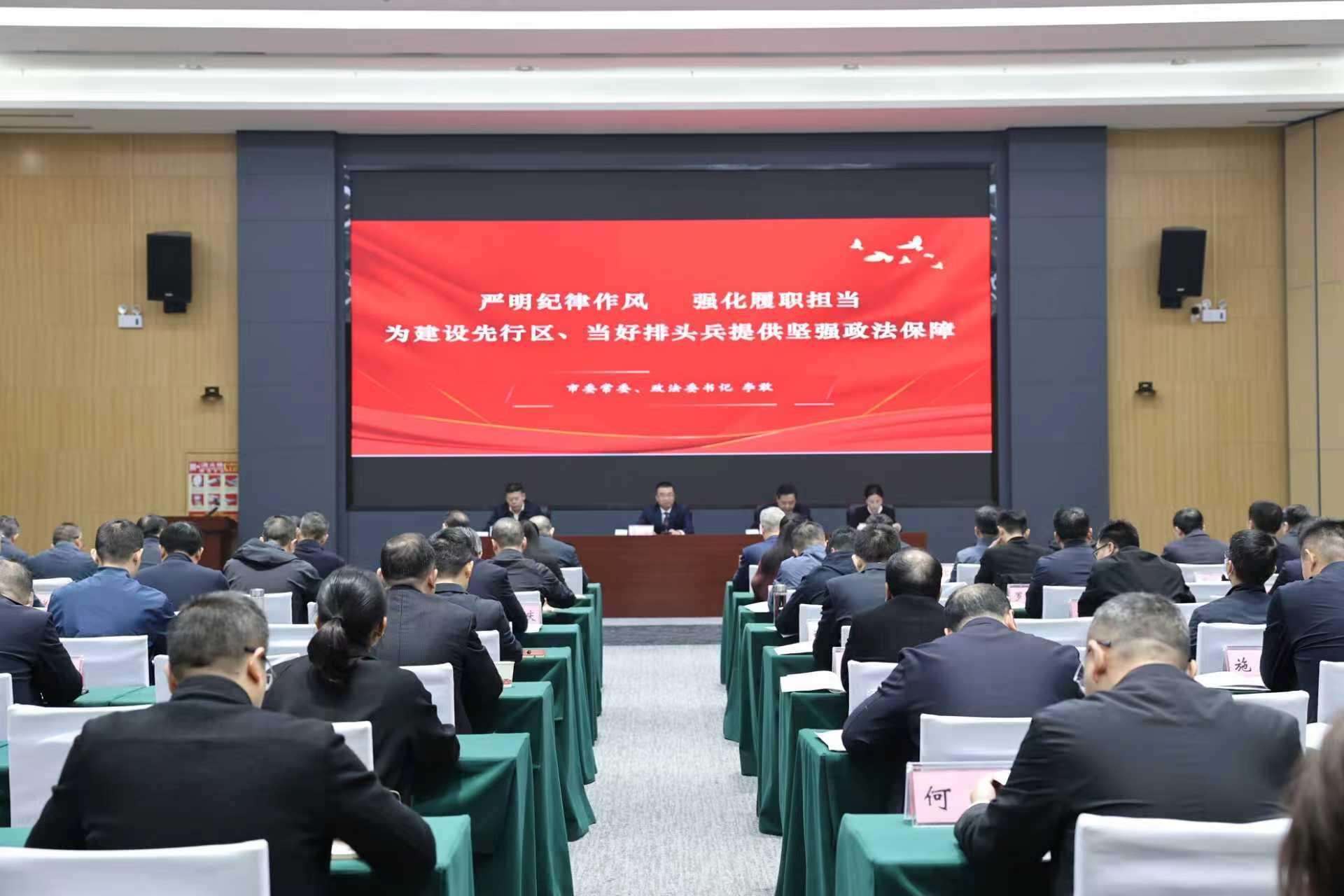 李敢強(qiáng)調(diào),要深入學(xué)習(xí)貫徹習(xí)近平總書記關(guān)于黨的自我革命的重要思想、關(guān)于加強(qiáng)黨的作風(fēng)建設(shè)的重要論述,持續(xù)鞏固深化學(xué)習(xí)教育成果,不斷提升履職能力水平。要切實(shí)增強(qiáng)抓紀(jì)律作風(fēng)的思想自覺、行動(dòng)自覺,堅(jiān)持抓領(lǐng)導(dǎo)干部這一“關(guān)鍵少數(shù)”,堅(jiān)持黨性黨風(fēng)黨紀(jì)一起抓,堅(jiān)持一體推進(jìn)學(xué)查改,以優(yōu)良紀(jì)律作風(fēng)推動(dòng)擔(dān)當(dāng)作為,持續(xù)加強(qiáng)政法隊(duì)伍建設(shè),為建設(shè)先行區(qū)、當(dāng)好排頭兵貢獻(xiàn)政法力量。