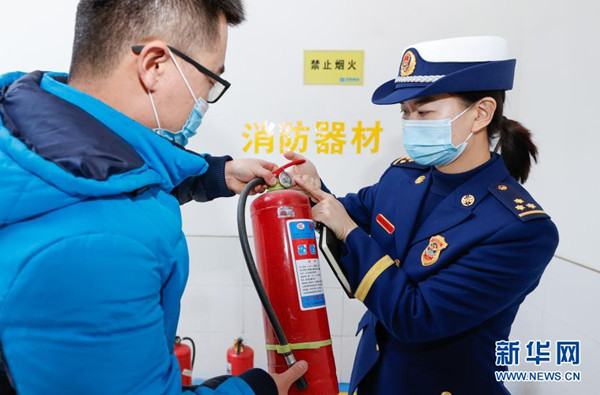 2月1日,消防監(jiān)督檢查人員在購(gòu)物商場(chǎng)內(nèi)對(duì)滅火器壓力進(jìn)行檢查?!?/span>