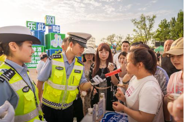 陜西西安交警新城大隊(duì)聯(lián)合市商務(wù)局開展交通安全主題宣傳