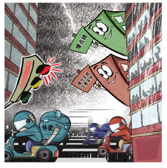“雨天路不好走,車速過20碼,剎車就容易打滑、摔倒,加上下雨影響視線,所以配送時間比晴天會長一些?!睆堃阏f。