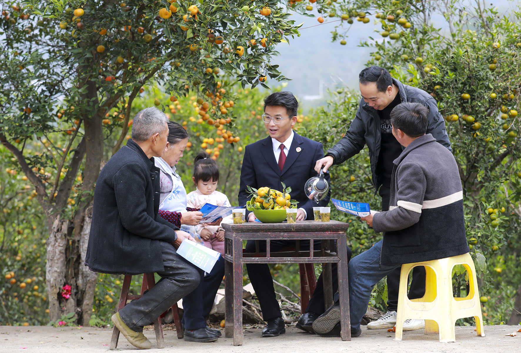 近日,貴州省黔西市人民檢察院開展“送法進(jìn)村助力鄉(xiāng)村振興”活動(dòng),檢察干警走進(jìn)該市素樸鎮(zhèn)索風(fēng)村農(nóng)家院子和果樹林,通過發(fā)放宣傳冊(cè)、現(xiàn)場(chǎng)解答、釋法說理等方式,開展防范電詐、交通安全、環(huán)境保護(hù)等相關(guān)內(nèi)容的宣傳,把法律法規(guī)送到農(nóng)戶家門口。圖為檢察干警在索風(fēng)村農(nóng)家院子給農(nóng)戶講解反詐知識(shí)。