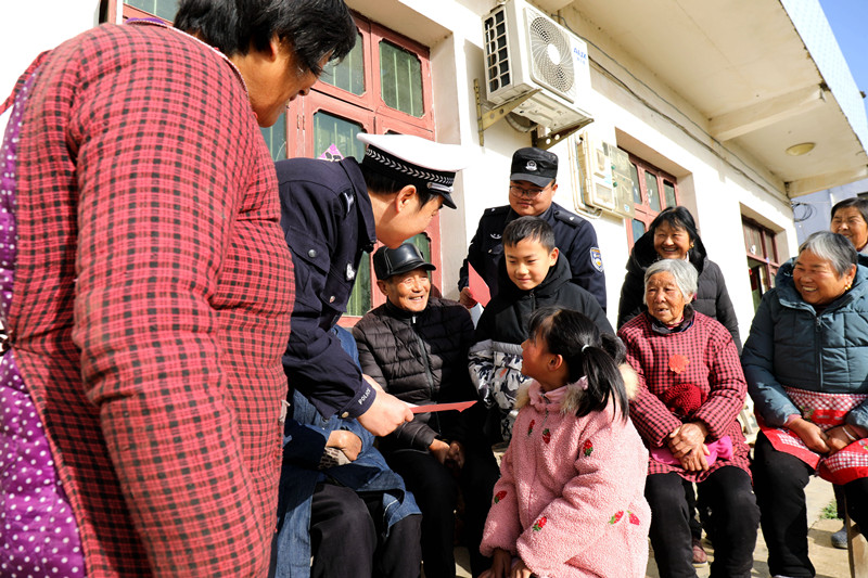 近日,安徽省舒城縣公安局交管大隊聯(lián)合柏林派出所走進轄區(qū)柏林鄉(xiāng)秦橋村,開展“一老一小”交通安全宣傳,提高老年人、少年兒童的交通安全意識。圖為民警向村民宣講交通安全知識。