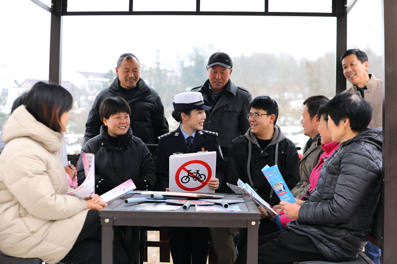 2月26日,安徽省舒城縣公安局交管大隊(duì)民警來到闕店鄉(xiāng)楓嶺村開展交通安全宣傳活動,民警通過拉家常方式向村民普及道路交通安全法律法規(guī),提醒廣大村民安全文明出行。圖為民警向村民講解道路交通安全知識。