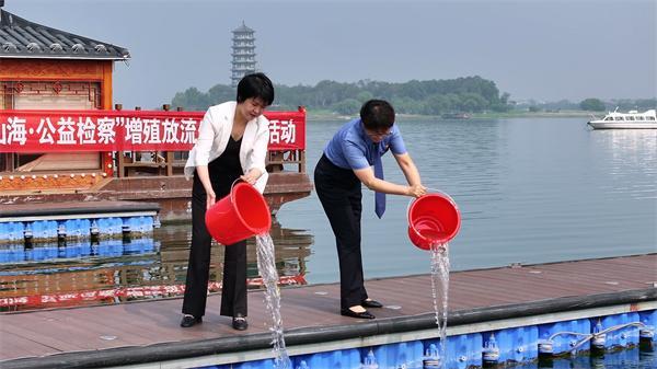 為推進“燕趙山海·公益檢察”護航美麗河北建設(shè)專項監(jiān)督繼續(xù)走深走實,河北省磁縣人民檢察院近日邀請縣政協(xié)委員在溢泉湖濕地公園開展增殖放流活動。圖為檢察干警和政協(xié)委員放生鰱鳙魚苗。