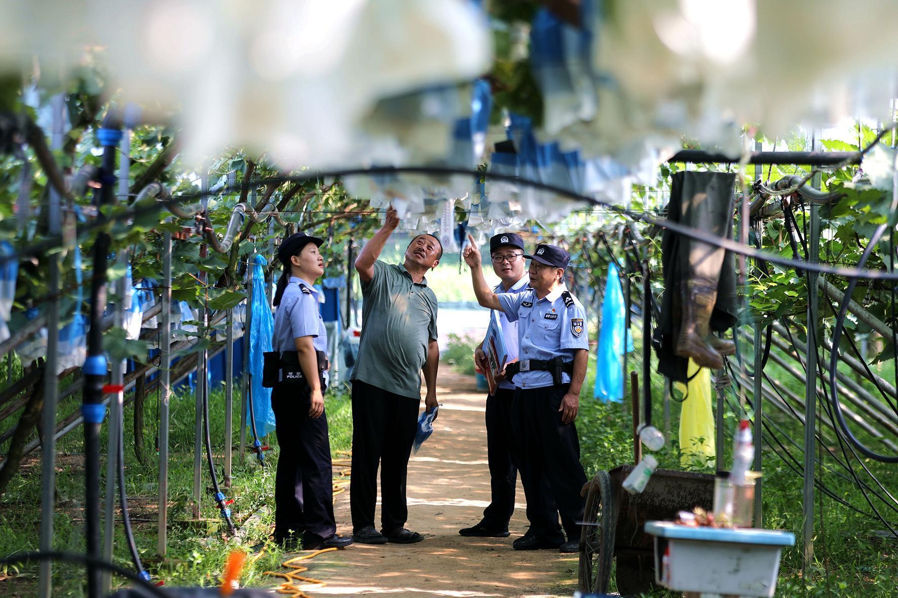 8月8日,安徽省舒城縣公安局五顯派出所民警走進(jìn)轄區(qū)一葡萄種植園,了解葡萄生長(zhǎng)、周邊治安等情況,宣傳“夏季行動(dòng)”相關(guān)知識(shí),做好安全防范。