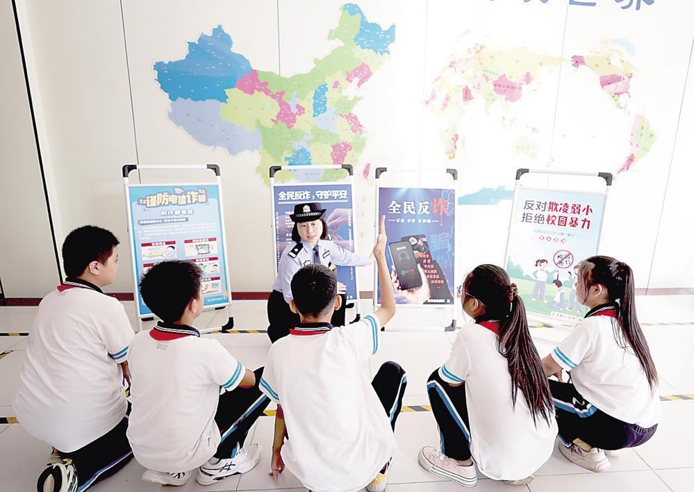 為進一步加強反詐防騙宣傳力度,不斷提高師生防詐騙能力,河北省東光縣公安局反詐中心民警近日深入轄區(qū)中小學(xué)校,開展以“創(chuàng)建無詐校園 護航青春成長”為主題的反詐宣傳活動。圖為民警為師生講解反詐知識。