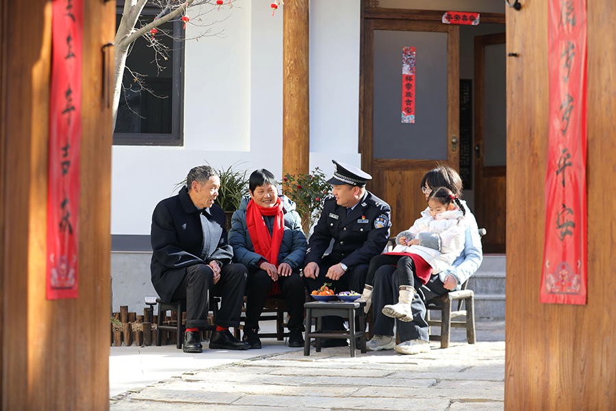 近日,安徽省舒城縣公安局山七派出所駐村輔警深入轄區(qū)村莊進(jìn)行入戶走訪,開展法治宣傳。圖為活動現(xiàn)場。