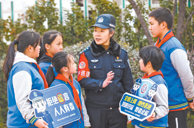 2月21日,山東省濟南市公安局市中分局二七新村派出所社區(qū)民警來到育明小學,開展“安全上網(wǎng) 護苗成長”網(wǎng)絡(luò)安全宣傳教育活動。圖為活動現(xiàn)場。