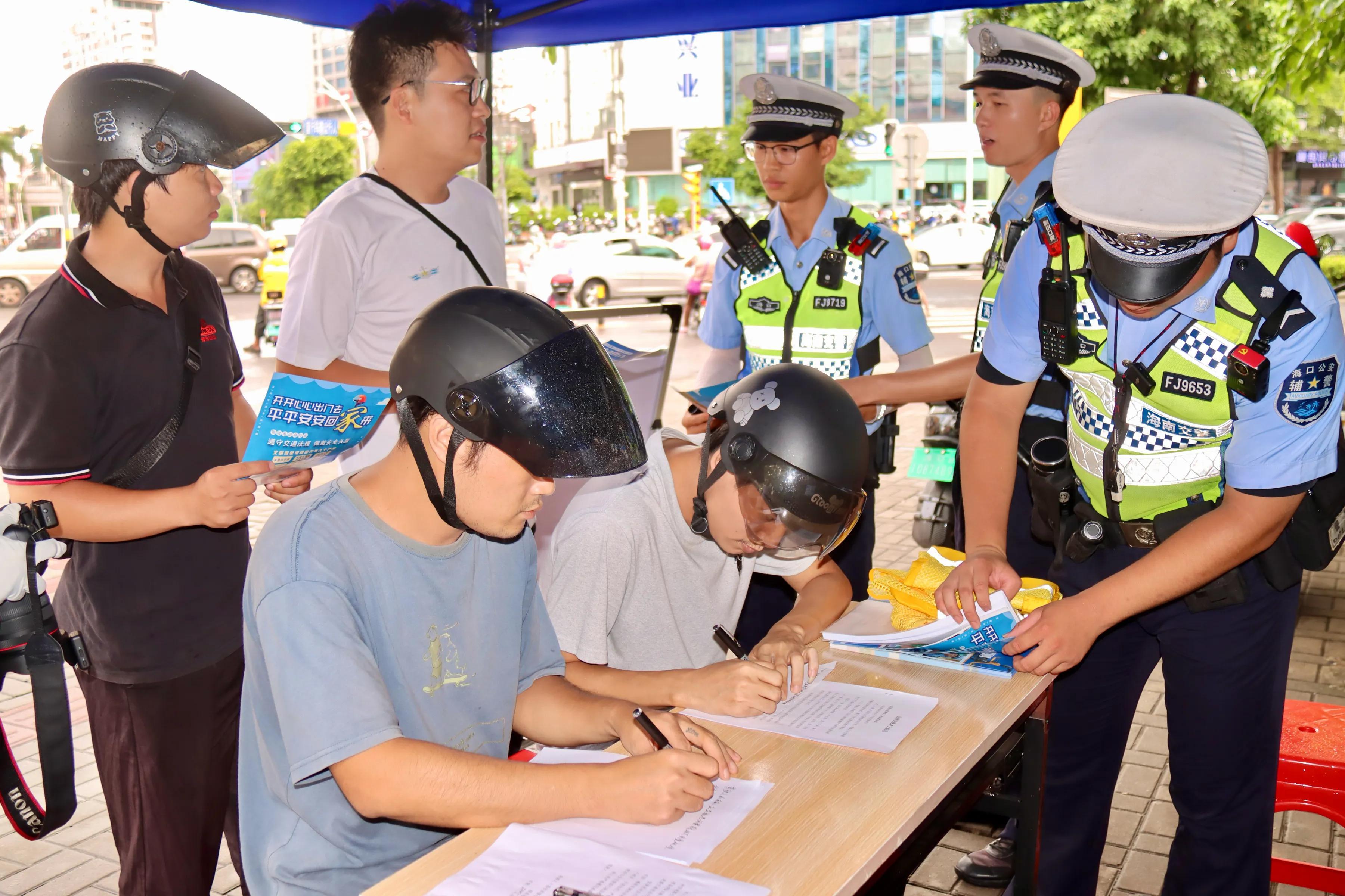 近日,海南海口公安交警在重點路段、商圈和學(xué)校周邊針對摩托車、電動自行車交通違法行為加大執(zhí)法力度,對闖紅燈、逆行、未佩戴安全頭盔、無號牌上路行駛等高頻違法行為開展精準整治。在嚴格執(zhí)法的同時,設(shè)立“馬路學(xué)堂”推行“教育免罰”,違法當事人可任選觀看警示教育視頻、抄寫交通法規(guī)條文、體驗輔助執(zhí)法中的一種方式完成學(xué)習(xí),簽署文明騎行承諾書后即可免罰,將執(zhí)法現(xiàn)場變?yōu)槠辗ㄕn堂,讓當事人深刻認識交通安全重要性。