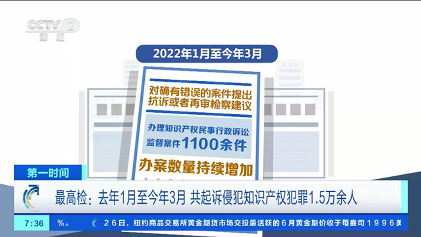 最高檢:去年1月至今年3月 共起訴侵犯知識產(chǎn)權(quán)犯罪1.5萬余人