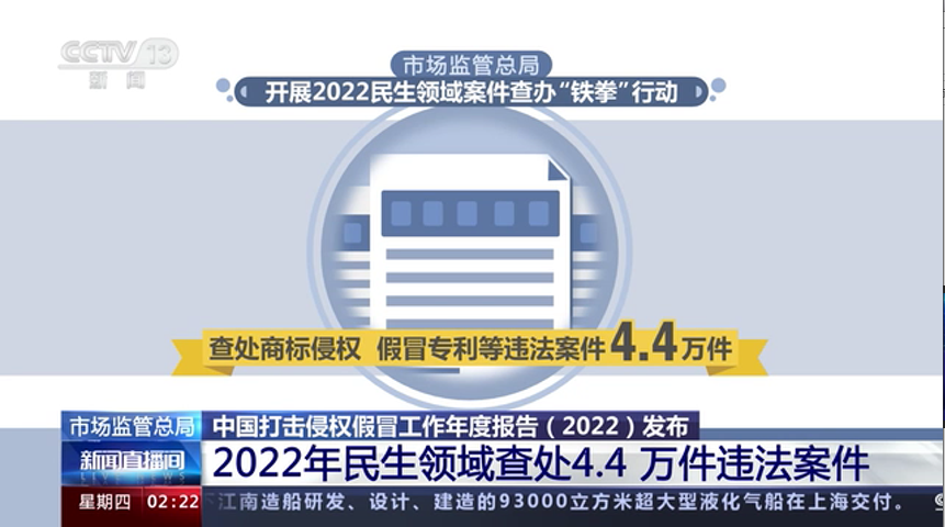 市場監(jiān)管總局 中國打擊侵權(quán)假冒工作年度報告(2022)發(fā)布 2022年民生領(lǐng)域查處4.4萬件違法案件