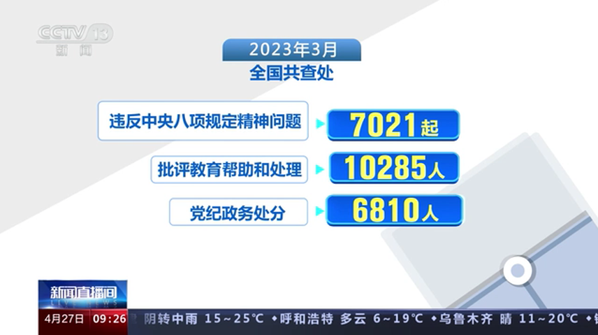 中央紀委國家監(jiān)委 3月查處違反中央八項規(guī)定精神問題7021起