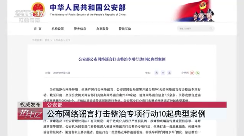 公安部 公布網(wǎng)絡(luò)謠言打擊整治專項(xiàng)行動10起典型案例