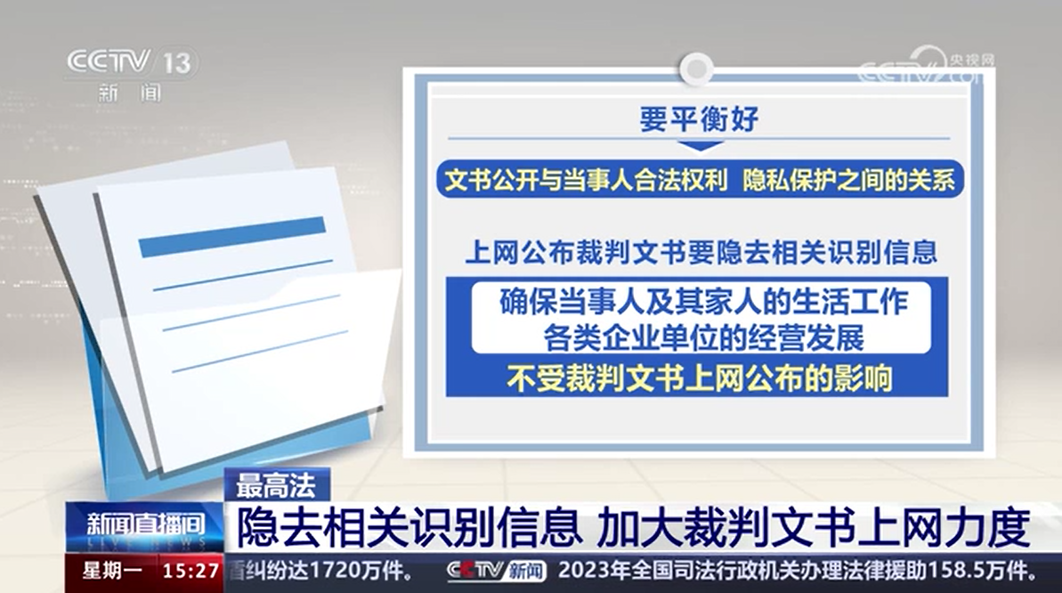 最高法 隱去相關(guān)識(shí)別信息 加大裁判文書上網(wǎng)力度