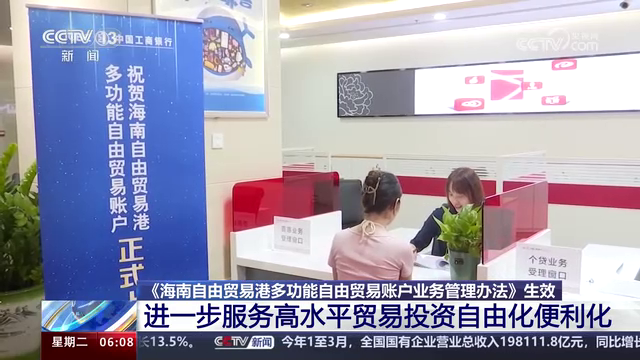 《海南自由貿(mào)易港多功能自由貿(mào)易賬戶業(yè)務管理辦法》生效 進一步服務高水平貿(mào)易投資自由化便利化