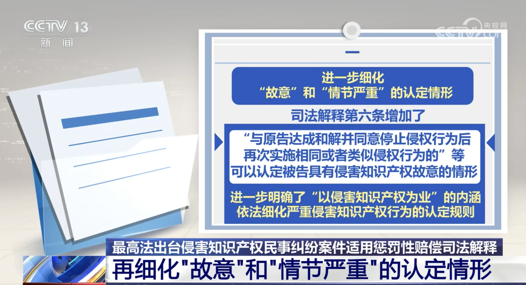 最高法出臺(tái)侵害知識(shí)產(chǎn)權(quán)民事糾紛案件適用懲罰性賠償司法解釋 再細(xì)化“故意”和“情節(jié)嚴(yán)重”的認(rèn)定情形