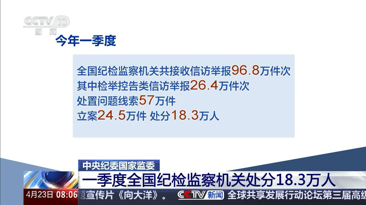 中央紀(jì)委國(guó)家監(jiān)委 一季度全國(guó)紀(jì)檢監(jiān)察機(jī)關(guān)處分18.3萬(wàn)人