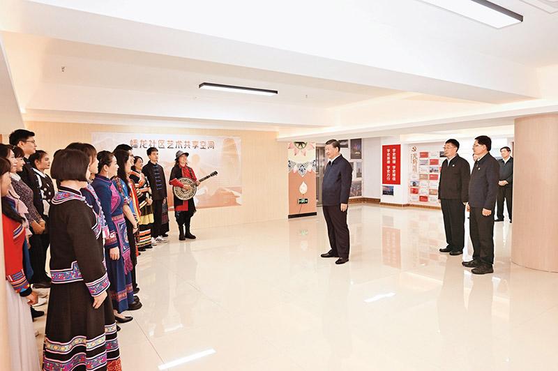 2023年12月14日至15日,中共中央總書記、國家主席、中央軍委主席習(xí)近平在廣西考察。這是14日上午,習(xí)近平在南寧市良慶區(qū)蟠龍社區(qū)黨群服務(wù)中心文體活動室同社區(qū)居民親切交流。新華社記者 謝環(huán)馳/攝