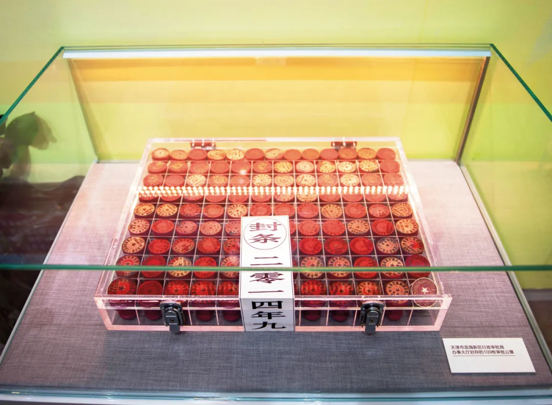 改革和法治如同鳥之兩翼、車之兩輪。必須堅(jiān)持全面依法治國,在法治軌道上深化改革、推進(jìn)中國式現(xiàn)代化。圖為中國國家博物館收藏的來自天津市濱海新區(qū)的109枚審批公章(資料照片)。 新華社發(fā)