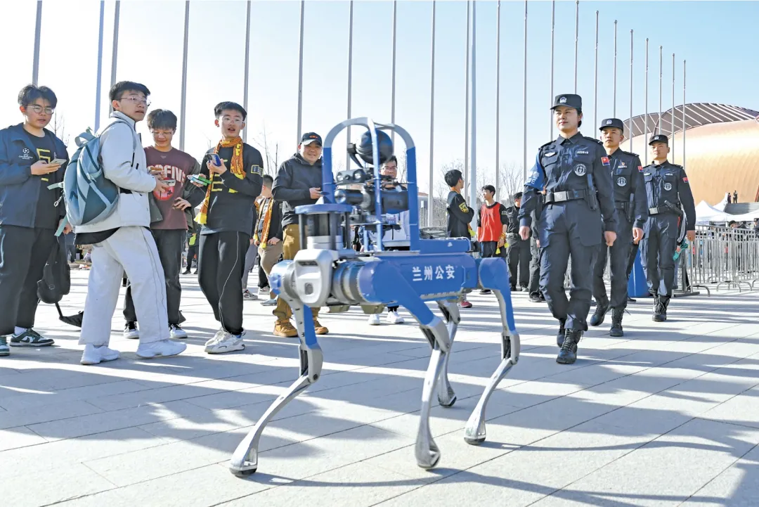 圖為蘭州公安“智犬”(機器狗)亮相賽事安保工作,成為地面巡邏的“智能尖兵”。 陳濤 攝