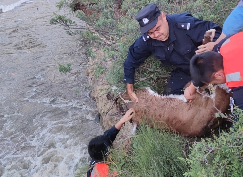 6月5日,新疆阿勒泰邊境管理支隊沖乎爾邊境派出所接到牧民報警稱自家小牛不慎掉下河崖,請求派出所協(xié)助救援。接到報警電話后,派出所立即組織4名民警趕赴現(xiàn)場,身綁救援繩下河崖施救,經(jīng)過近1個小時的救援,在民警和現(xiàn)場群眾的協(xié)同配合下,成功將小牛營救上岸,為牧民群眾挽回經(jīng)濟(jì)損失。