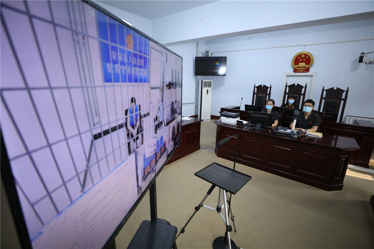 8月12日,河南省安陽(yáng)縣人民法院運(yùn)用信息化技術(shù)手段,通過(guò)遠(yuǎn)程提訊系統(tǒng)與看守所視頻連線,開(kāi)庭審理一起幫助信息網(wǎng)絡(luò)犯罪活動(dòng)案。庭審期間,該院法官面對(duì)電子屏幕,法庭調(diào)查、法庭辯論、被告人最后陳述等,整個(gè)庭審過(guò)程規(guī)范有序,視頻畫(huà)面清晰通暢,真正實(shí)現(xiàn)了審判人員與被告人“零接觸”,做到了防疫辦案兩不誤。