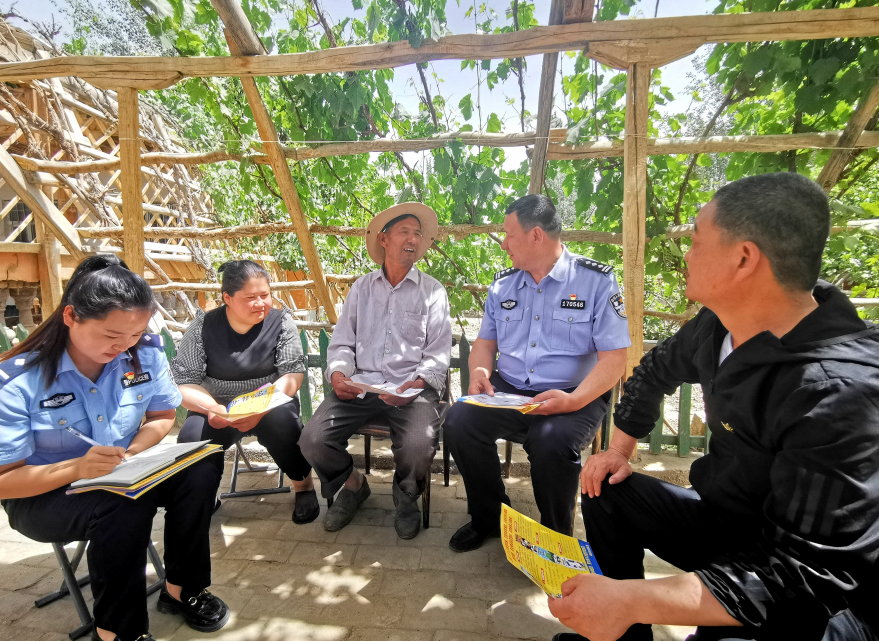 5月18日上午,新疆維吾爾自治區(qū)和田地區(qū)和田市公安局組織多支黨員民警志愿服務(wù)隊(duì),來到轄區(qū)古江巴格鄉(xiāng)紅星村,進(jìn)村入戶開展防詐反詐普法宣傳,幫助群眾解決急難愁盼問題,走進(jìn)鄉(xiāng)村學(xué)校開展交通安全、未成年人保護(hù)法等相關(guān)法律知識宣講活動,深入推進(jìn)“我為群眾辦實(shí)事”實(shí)踐活動,以傾心服務(wù)增添轄區(qū)平安亮色。 法治日報全媒體記者 潘從武 攝
