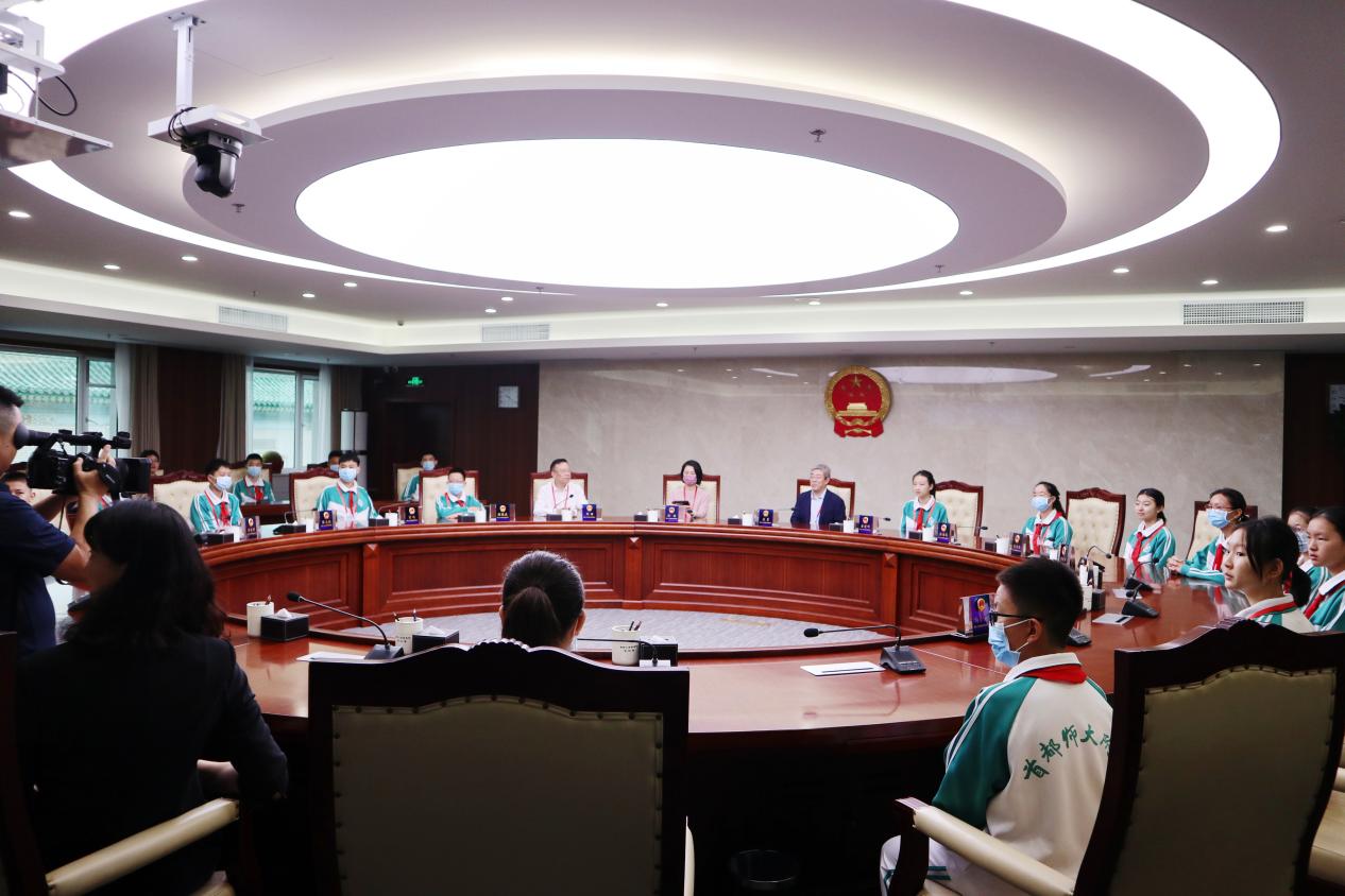 在“六一”國際兒童節(jié)來臨之際,5月30日,最高人民檢察院以“檢愛同行,共護(hù)花開”為主題,舉辦第41次檢察開放日活動(dòng)。來自首都師范大學(xué)附屬中學(xué)、北京理工大學(xué)附屬中學(xué)、北京市第六十五中學(xué)的90余名師生和7位關(guān)心關(guān)注未成年人檢察工作的全國人大代表、全國政協(xié)委員,一起走進(jìn)最高檢。