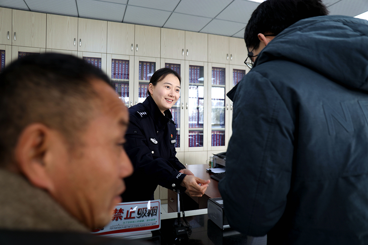 1月1日,安徽省舒城縣公安局柏林派出所戶籍窗口民警為群眾辦理戶籍業(yè)務(wù)。元旦假期,為方便回鄉(xiāng)群眾辦理戶籍業(yè)務(wù),該局認(rèn)真落實(shí)便民服務(wù)措施,開(kāi)辟綠色“便民通道”,戶籍民警以貼心服務(wù),最大限度滿足轄區(qū)群眾需求。