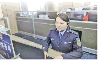 圖為李穎正在接警。 常曉晴 攝