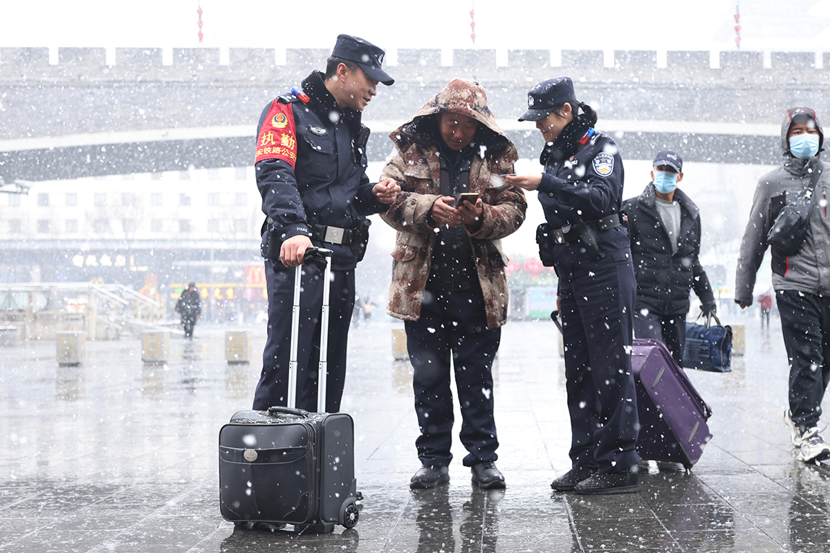 1月15日,陜西省多地迎來(lái)今年首次大范圍雨雪天氣,為確保管內(nèi)鐵路運(yùn)輸和旅客乘車安全,西安鐵路公安局西安公安處立即啟動(dòng)應(yīng)對(duì)雨雪惡劣天氣應(yīng)急預(yù)案,確保旅客出行平安。