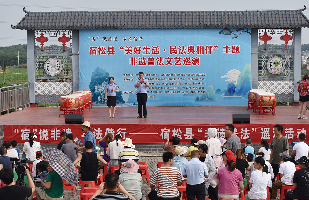 5月26日,安徽省宿松縣司法局“非遺普法”文藝演出隊走進高嶺鄉(xiāng)青云村開展民法典普法宣傳。通過群眾喜聞樂見的文南詞、大鼓書、小品、歌曲聯(lián)唱、有獎問答等形式宣講法律知識,增強村民尊法學(xué)法守法用法意識。