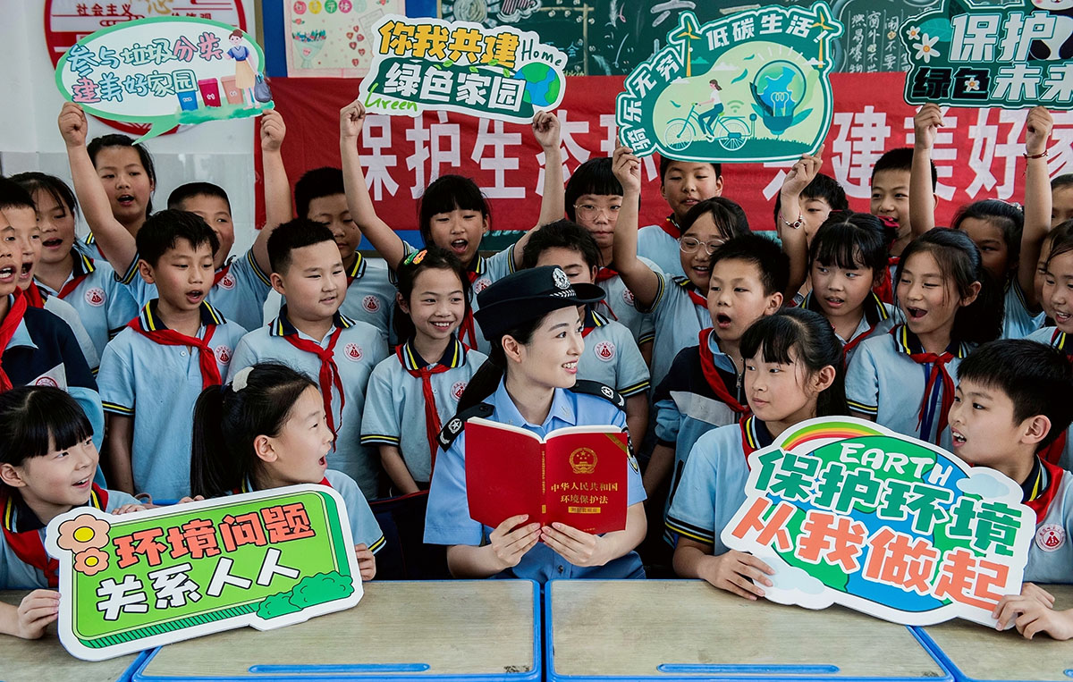 6月3日,安徽省含山縣司法局普法志愿者走進安徽師范大學附屬實驗小學開展“保護生態(tài)環(huán)境 共建美好家園”主題家園活動。普法志愿者通過普及環(huán)境保護法知識、體驗垃圾分類、趣味搶答等形式,幫助孩子們從小樹立環(huán)保理念和愛護環(huán)境的意識,喜迎第53個世界環(huán)境日的到來。