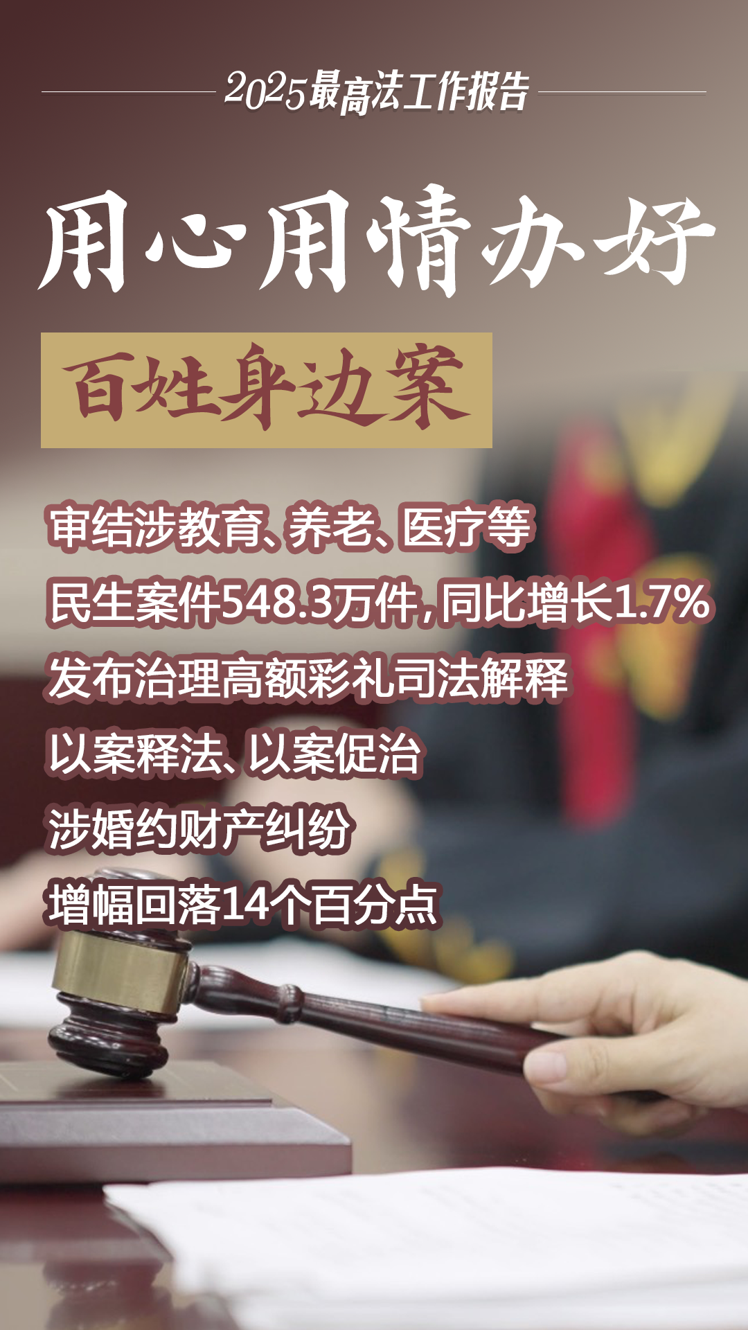 保障百姓安居樂業(yè),守護老年人幸福晚年,助力勞動者樂業(yè)安“薪”……3月8日,最高人民法院工作報告提請十四屆全國人大三次會議審議。民有所呼,我有所應(yīng)。2024年以來,全國法院堅持人民至上,聚焦百姓急難愁盼,以“如我在訴”意識辦好民生案,持續(xù)增強群眾對司法公正的獲得感。AI繪圖,帶你這樣看“法”。