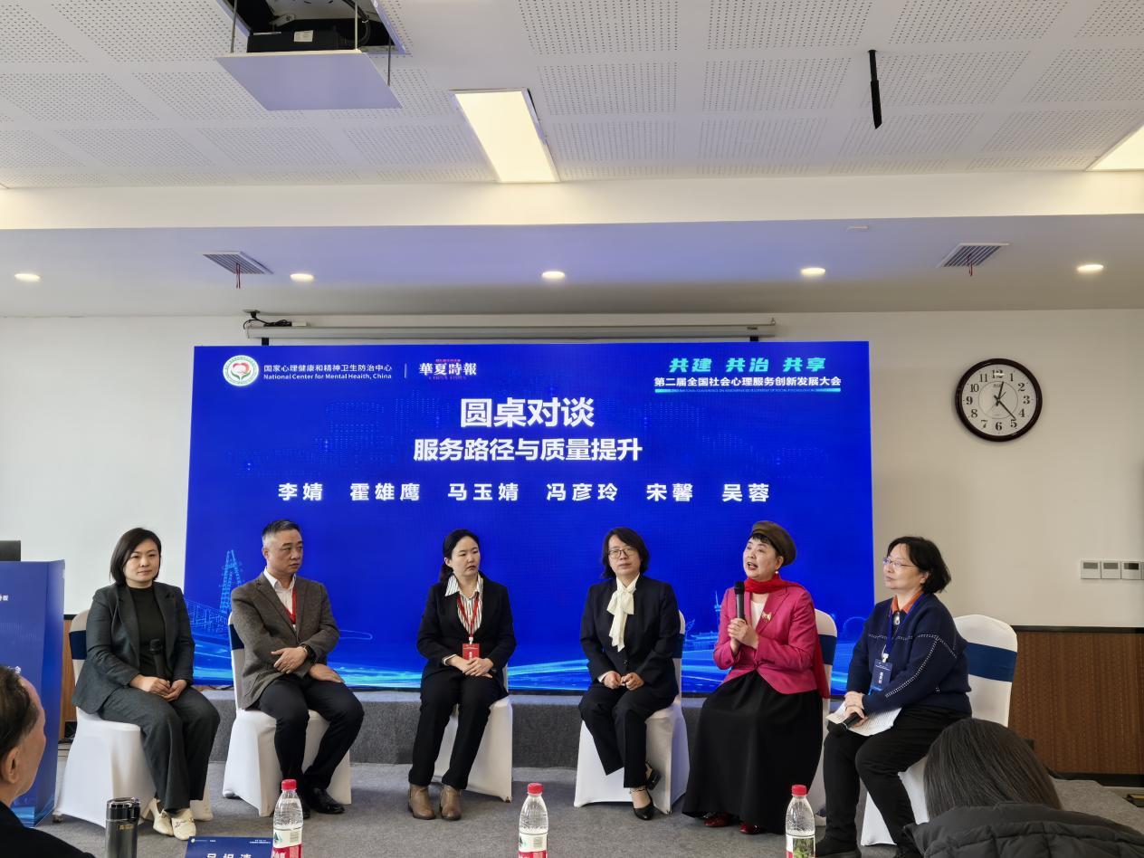 圖為宋馨在圓桌對話會上分享為困境兒童提供心理健康關(guān)愛服務(wù)