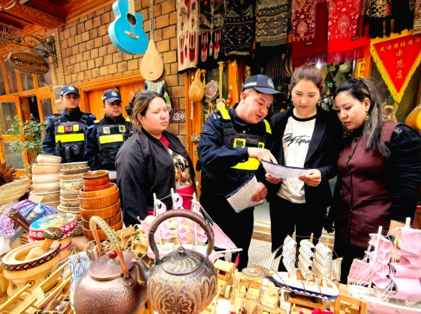 進(jìn)入4月下旬,新疆和田地區(qū)各景區(qū)游客劇增。為進(jìn)一步提升景區(qū)經(jīng)營戶和廣大游客的法治意識,營造平安和諧的法治環(huán)境,新疆和田市公安局啟動實施“旅游警務(wù)”,各景區(qū)便民警務(wù)站深入開展普法宣傳活動,為游客和商戶送上“法治春風(fēng)”。