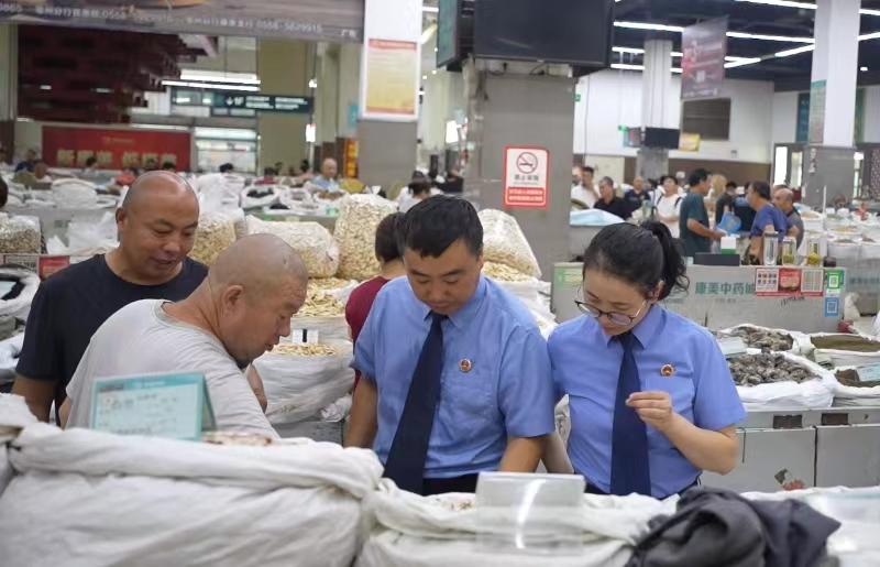 圖為亳州市譙城區(qū)檢察院檢察官在亳州中藥材交易市場進行藥品質(zhì)量安全檢查。張哲 攝