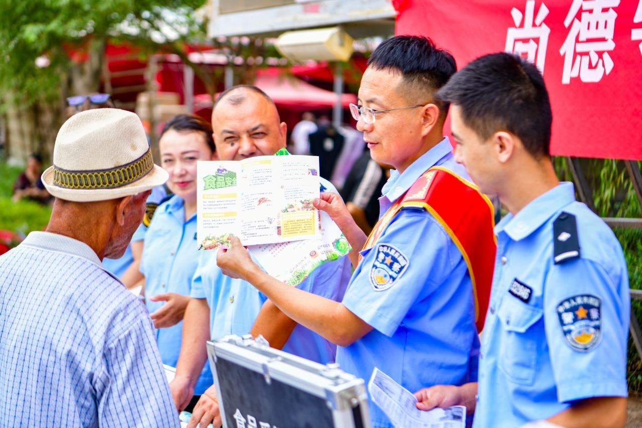7月26日,新疆新和縣公安局聯(lián)合縣市場監(jiān)督管理局、疾控中心等單位,在該縣金橋廣場、牛羊市場、玫瑰商業(yè)廣場等地開展形式多樣的食品安全知識普法宣傳活動。夏日熱浪中,警民熱情互動,共話食品安全。