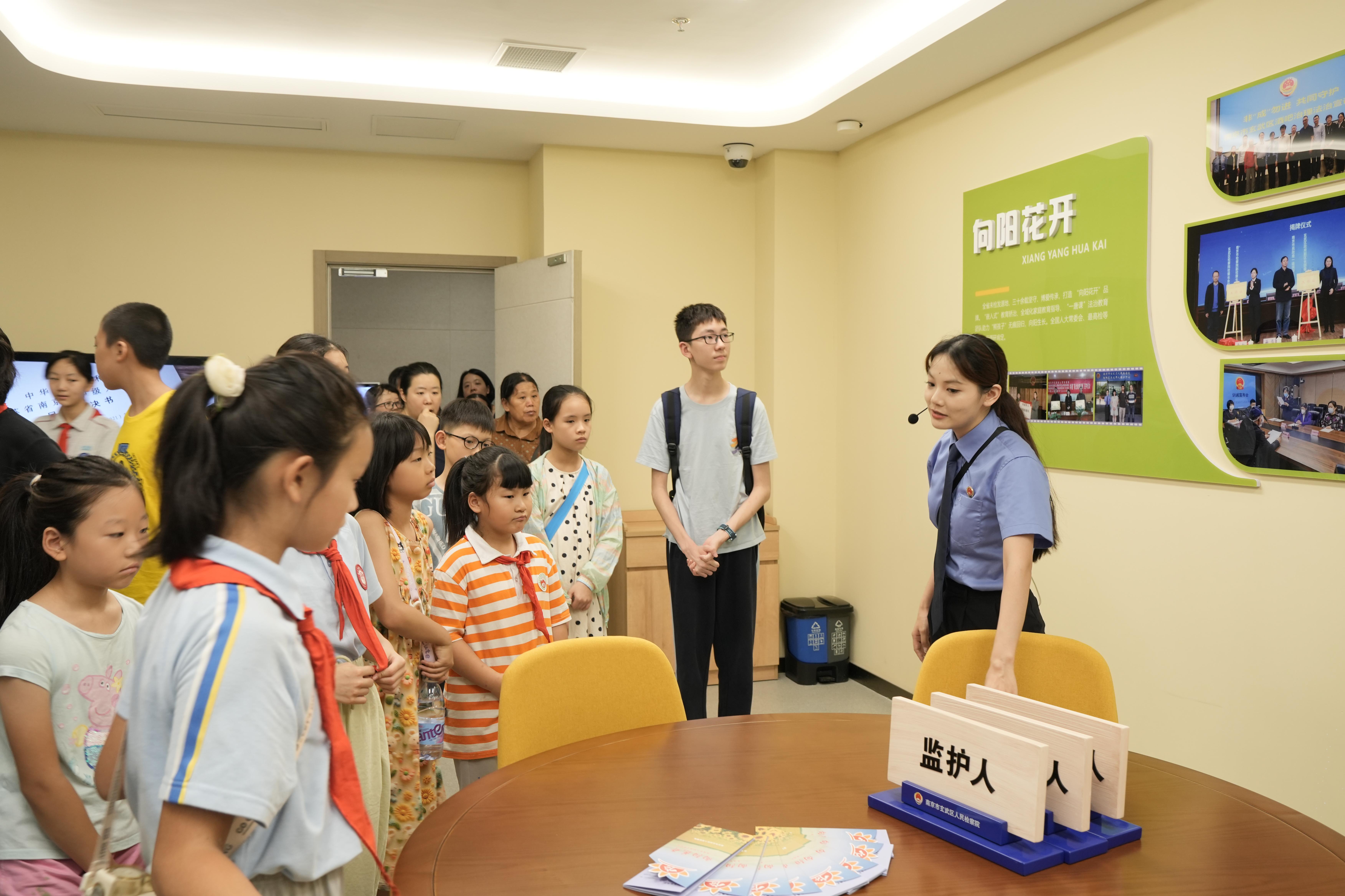 “這個是不是壞人坐的位置?”一名小朋友指著訊問室的座椅問道,隨即又指著檢察官的位置堅定地說:“我以后要坐在上面的位置,要教育壞人……”童言無忌中,法治的種子已悄然萌芽。
